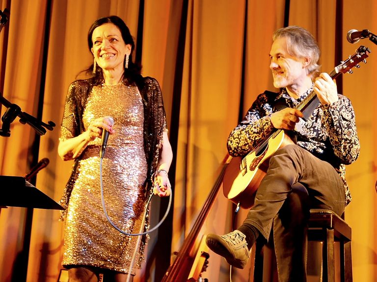 Klaus Neubert begleitet sie virtuos an der Gitarre und zaubert klangvolle Variationen, die zum Mitsummen einladen – Ohrwurmpotenzial garantiert.